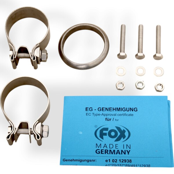 Die meisten Fox Sportauspuffe sowie alle Endrohre sind DEKRA / TÜV geprüft und werden mit EU Gutachten / ABE ausgeliefert.